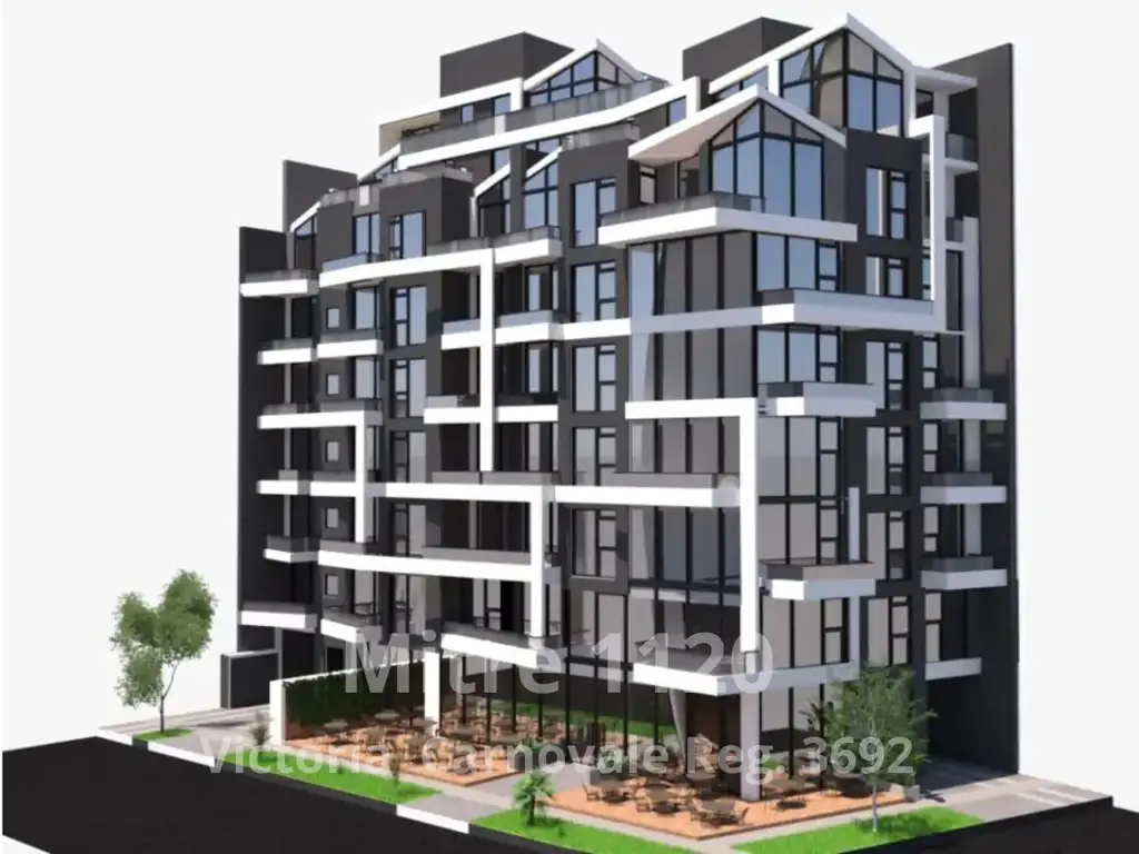 El edificio se desarrolla en 8 plantas, y cuenta con departamentos de 2 y 3. Los departamentos de 3 ambientes oscilan en los 95 a 105 mts cuadrados cubiertos. Asi mismo cuenta con cocheras que se desarrollan en planta baja, y dos niveles de subsuelo. También incluye espacio de guardado en bauleras individuales.