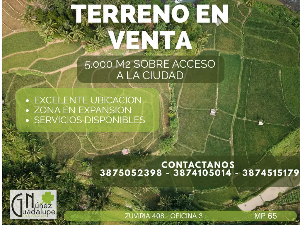 Terreno de 5000 m2 ubicado en el acceso a la ciudad, a metros del mirador Portezuelo, sobre Av. Asuncion. Todos los servicios. Ideal para inversion.