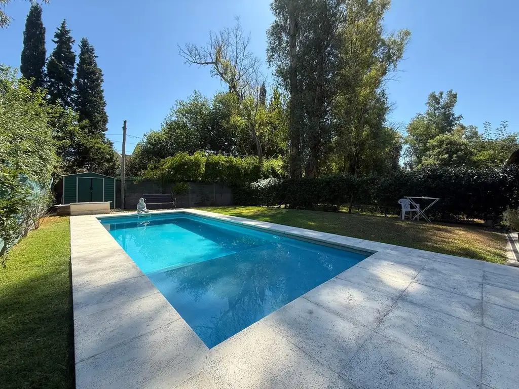 Disfruta de tus momentos al aire libre en el jardín con una generosa pileta de gran tamaño, y un espacio hermoso con bancos y fogonero.