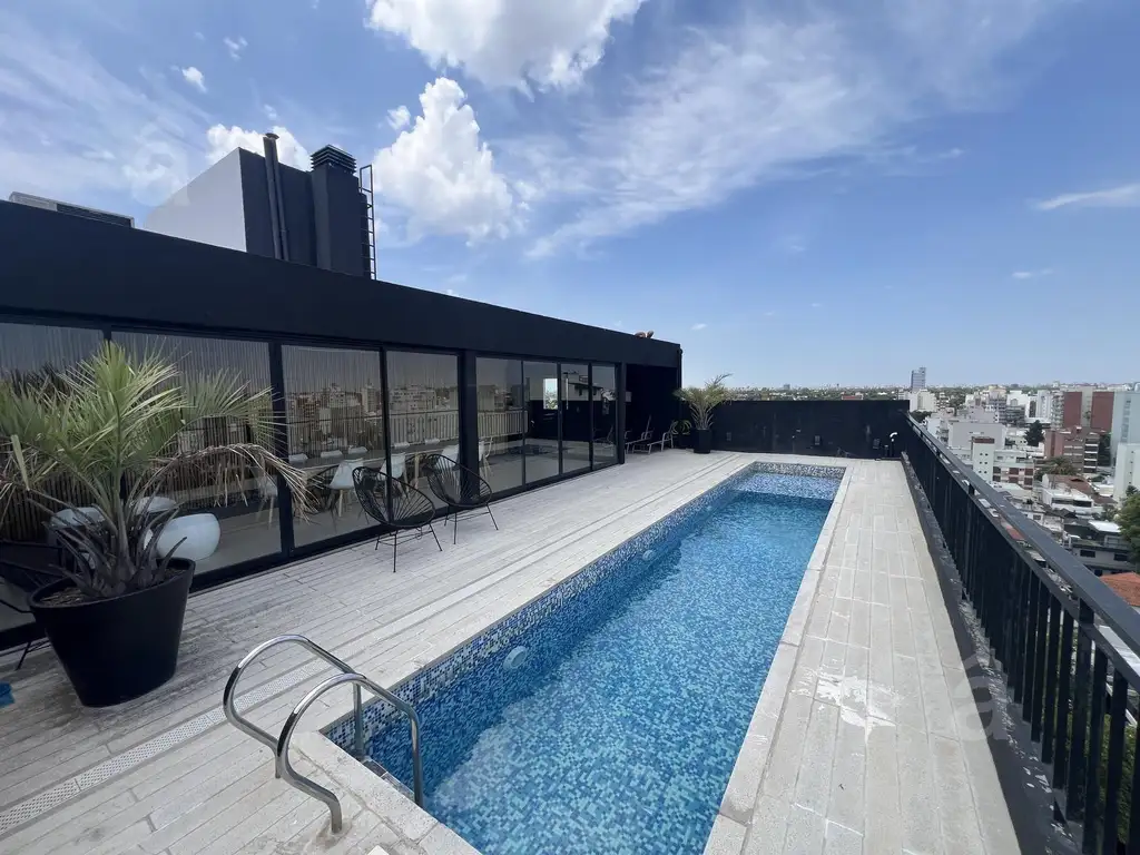 Edificio con piscina, sum y parrilla.