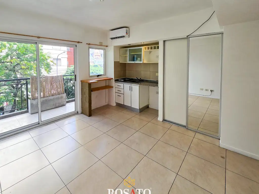 * El departamento comprende un ambiente con un ventanal con salida a Ramón Falcón.