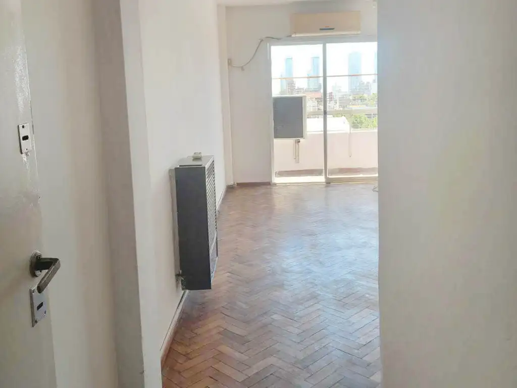 Amplio Living comedor con calefactor y aire, con salida al balcón corrido.