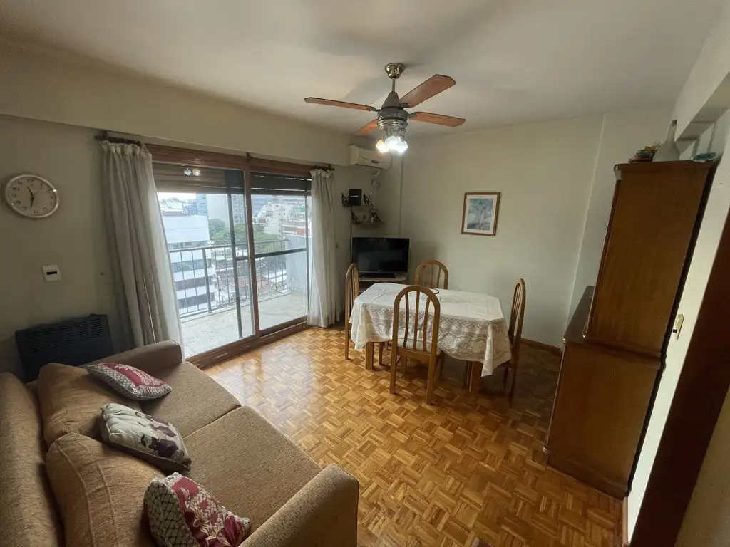 Living comedor con pisos de parquet. Aire acondicionado, ventilador de techo y estufa (tiro balanceado).