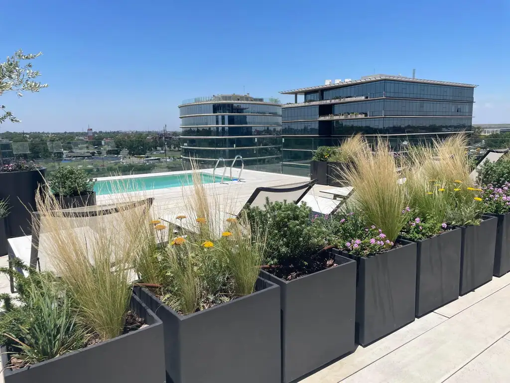 El edificio cuenta con muy lindos amenities: coworking, sum, espacio de parrillas para alquilar, gimnasio, pileta, laundry, seguridad 24 hs.