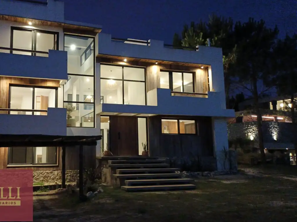 La casa cuenta con 5 dormitorios, 6 baños, cocina, living comedor, lavadero, oficina con toilette, bar, sala de estar/comedor, SUM, cochera y pileta.