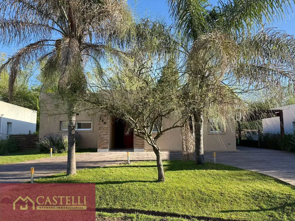 La casa tiene 3 habitaciones, una en suite, living comedor con cocina integrada y baño de invitados. Pileta. Galeria, Riego y excelente parquizacion.