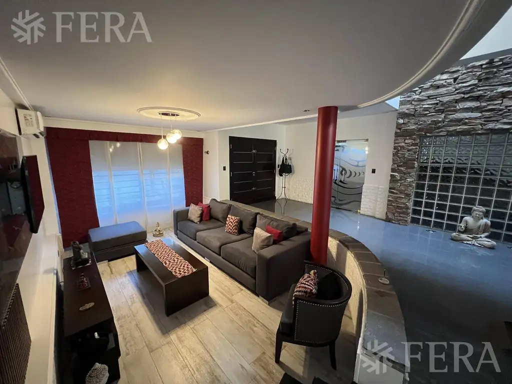 La planta alta dispone de una suite principal con baño completo, jacuzzi y cómodo vestidor. Además, dos dormitorios con placard empotrado, y un escritorio, todos con salida a un gran balcón terraza, ideal para disfrutar del aire libre. Tambien posee otro baño completo. El exterior ofrece un fondo libre parquizado, con estanque y un quincho independiente al fondo, equipado con cocina, baño completo y cuarto de guardado, ideal para reuniones y celebraciones. La propiedad cuenta con sistema de cámaras, alarma, estufa, equipos de aire frío/calor y riego automático, brindando confort y seguridad.