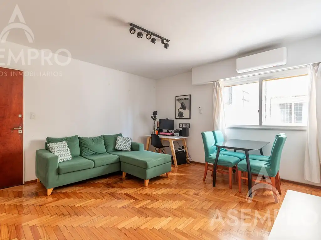 Se trata de un departamento de 40 años de antiguedad que conserva la nobleza de sus materiales. La planta se distribuye de manera eficiente, destacando sus pisos de parquet originales, que aportan calidez y durabilidad.