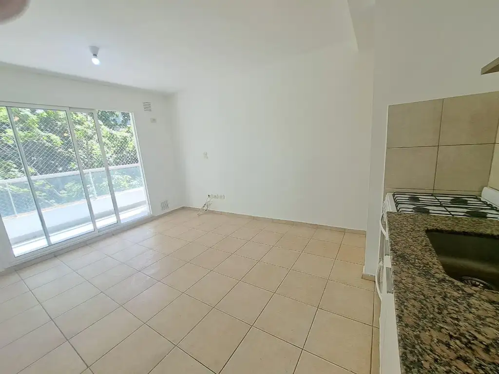 Monoambiente en alquiler, ideal para una persona, pareja joven o espacio para oficina. El lugar se encuentra bien distribuido, con ambiente único y luminoso, con amplio balcón al frente que aporta excelente vista abierta (el mismo cuenta con red de protección). Cocina integrada equipada con bajo mesada y estantes. Cuenta con termotanque y un espacio bajo mesada para frigobar. Baño completo con bañera, en el mismo se encuentra la conexión con espacio para lavarropas.El departamento cuenta con pisos cerámicos y excelente ventilación. Ubicado en zona estratégica, con acceso cercano a transporte público, comercios y universidades.