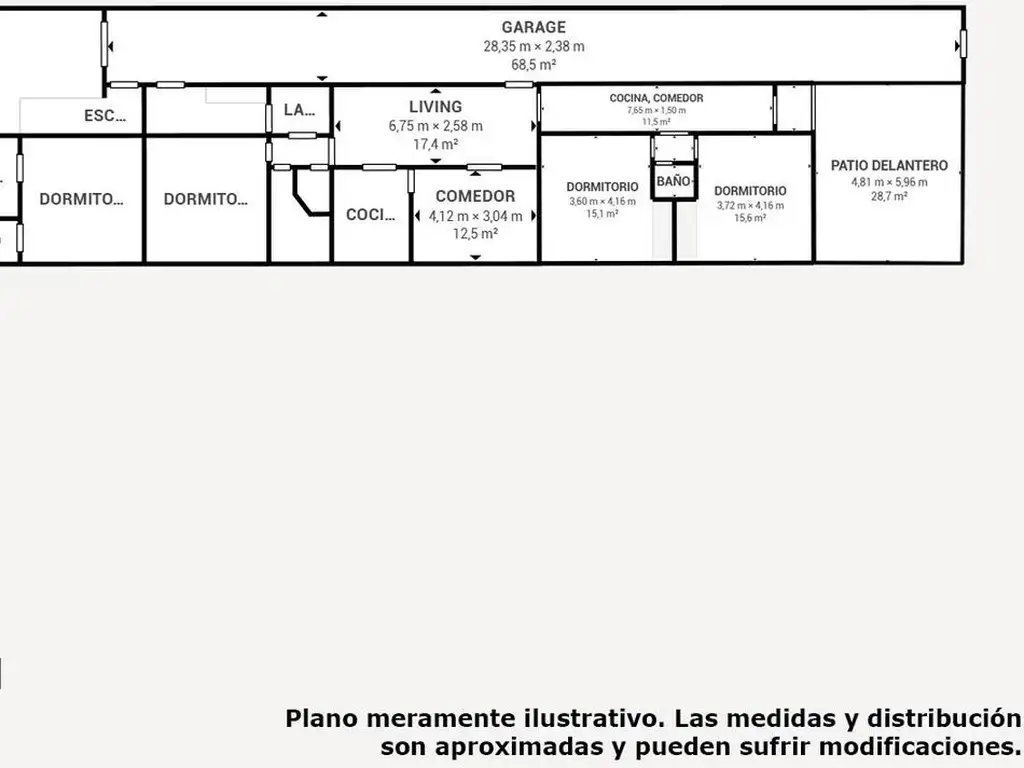 Dormitorio, cocina, baño completo y lavadero.