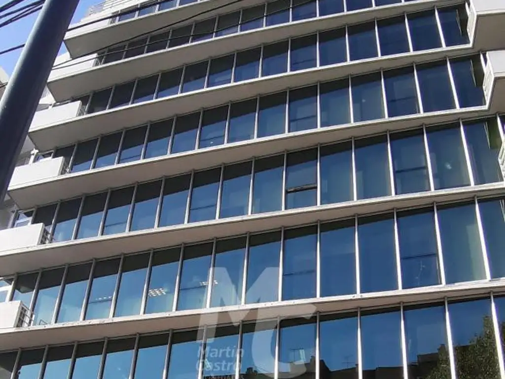 Construcción con frente vidriado de estética corporativa, sistema de cámaras de seguridad y dos salas de reuniones de uso común en el último piso, aptas para encuentros profesionales y presentaciones.