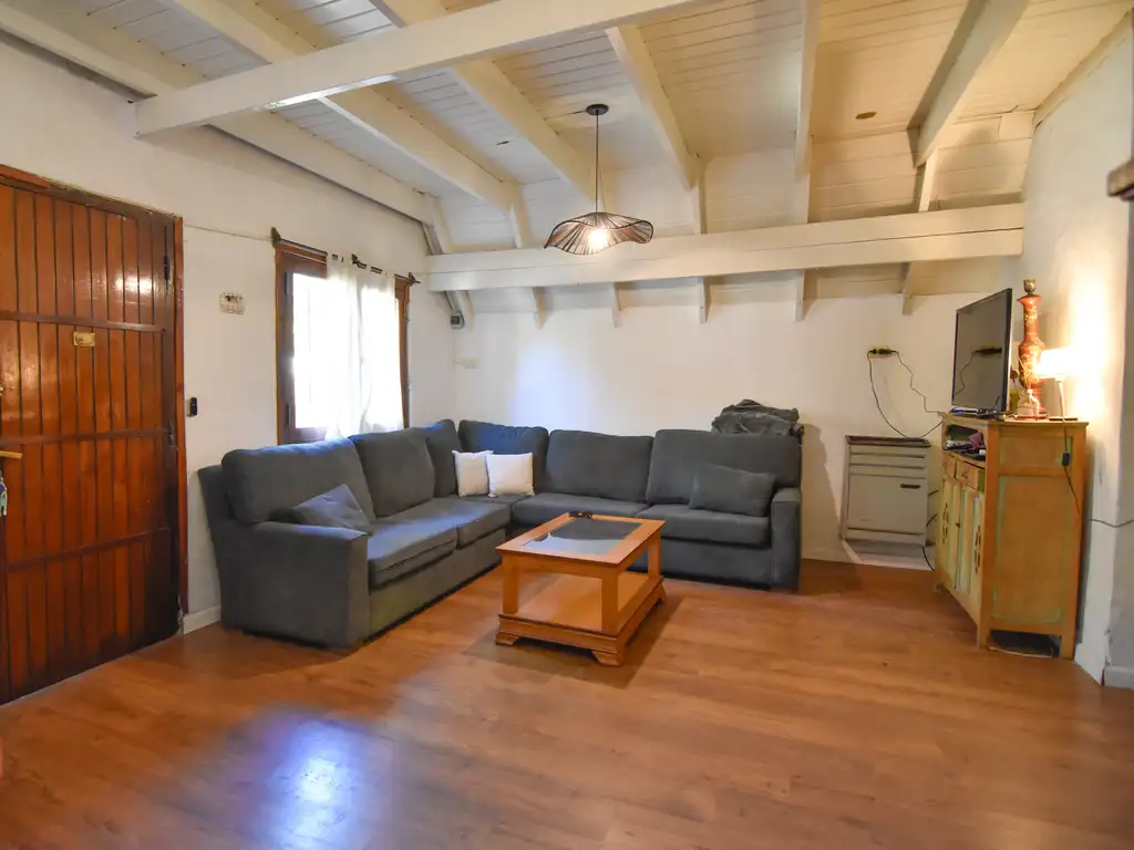 Cuenta con jardin al frente. Amplio living comedor con hogar 4,6x6, ventilación natural al frente. Pasillo de distribución 2,8x1. Ante-baño y baño completo 1,6x2,4. Cocina comedor con barra desayunadora 3,7x7,3, muy luminosa, ventilación natural al parque. Dormitorio chico/escritorio 2,8x3 con placard empotrado y ventilación natural al parque, a continuación acceso a la planta alta donde se encuentra el dormitorio principal 7,6x3 con placard empotrado. Lavadero. Amplio parque con arboles frutales y parrilla. Garage para un vehiculo 7x2,7. Entrada para varios vehiculos descubierta.