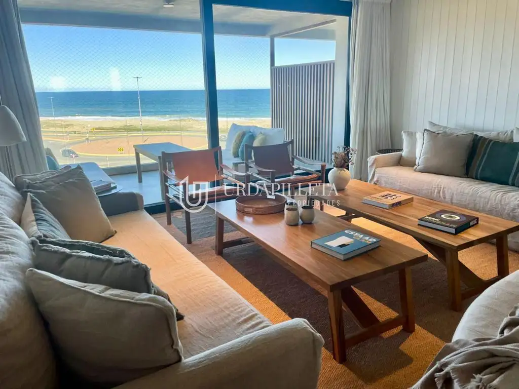 Apartamento ubicado en Manantiales, frente a la playa. Cuenta con dos terrazas.
