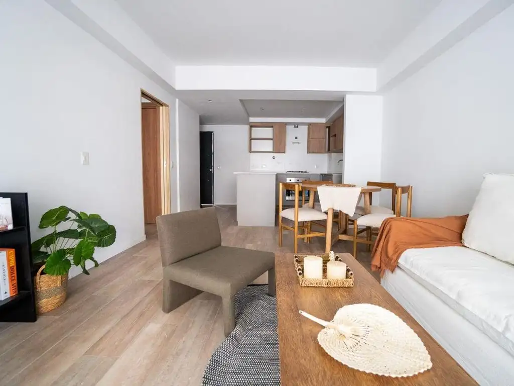 La unidad se encuentra al frente y se compone de living comedor con cocina integrada, dormitorio con placard completo, baño completo y toilette de recepción. Se destaca su balcón al frente con parrilla a gas, un diferencial poco habitual en la zona, que aporta expansión propia y funcionalidad para reuniones y momentos al aire libre.