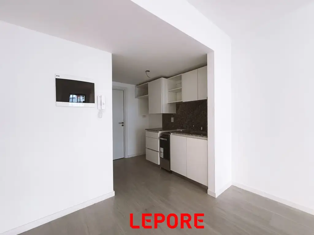 La unidad se ubica en 5ºPISO al frente con un total de 31,54m2. Consta de un ambiente con balcón. La cocina integrada, equipada con muebles bajo mesada y alacenas con moderno diseño de última generación con combinación de materiales (melamina o similar). La mesada de granito negro Brasil (o similar) y las griferías de acero inoxidable de 1ºmarca al igual que en el baño. Se entrega provista de horno y anafe eléctrico. El piso de la unidad de porcelanato de 1º calidad y el acabado de muros y cielorraso será de yeso pintado. El piso en balcón de porcelanato también pero antideslizantes acabado mate. La carpintería seráde aluminio con vidrio de seguridad laminado. Proxima entrega