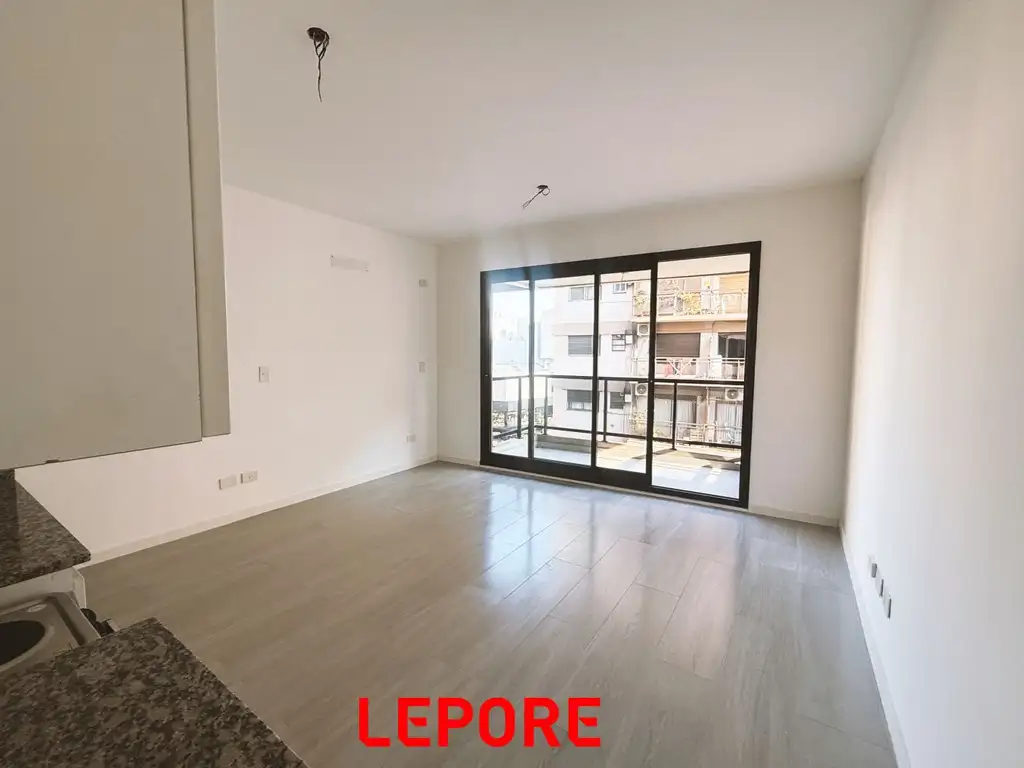 La unidad se ubica en 5ºPISO al frente. Consta de un ambiente con balcón. La cocina integrada, equipada con muebles bajo mesada y alacenas con moderno diseño de última generación con combinación de materiales (melamina o similar). La mesada de granito negro Brasil (o similar) y las griferías de acero inoxidable de 1ºmarca al igual que en el baño. Se entrega provista de horno y anafe eléctrico. El piso de la unidad será de porcelanato de 1º calidad y el acabado de muros y cielorraso será de yeso pintado. El piso en balcón de porcelanato también pero antideslizantes acabado mate. La carpintería de aluminio con vidrio de seguridad laminado. Proxima entrega