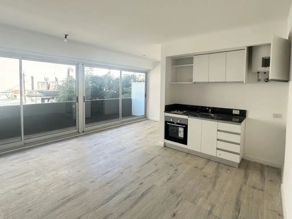 Departamento con distribución HORIZONTAL, por lo tanto al tener un amplio ventanal de pared a pared permite dividir la unidad y generar dos amplios ambientes. Está ubicado en un piso alto, por lo tanto será muy luminoso y tendrá una vista espectacular. Baño completo, con bañera y artefactos. Cocina eléctrica; totalmente equipada con muebles altos y bajo mesada, integrada al ambiente. Pisos de porcelanato simil madera.
