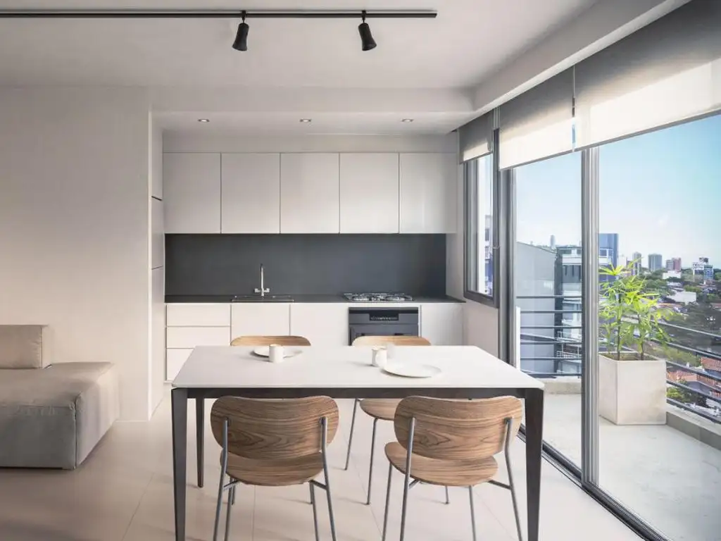 Descripción: Departamento tres ambientes en venta. Amplio living con expansion a balcón. Cocina separada completamente equipada. Dormitorio principal y segundo dormitorio o estudio. Baño completo. Todas las unidades poseen balcón, cocina y baño completamente equipados, pisos y revestimientos de porcelanatos, pre instalación para aire acondicionado, y todos los servicios.
