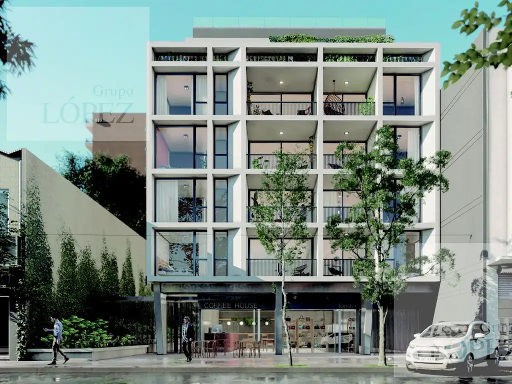 Semi-Torre de 4 pisos con amenities y piscina en terraza.