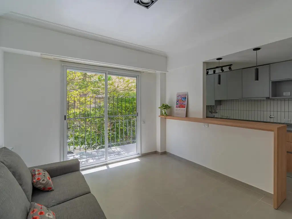 Al ingresar te recibe un living comedor con ventanal y salida al balcón saliente sobre calle Falucho, que aporta amplitud y conexión con el entorno urbano. La cocina integrada con barra se destaca por su mobiliario a medida y ventilación natural. Está completamente equipada con anafe, horno empotrado, lavarropas y heladera con freezer, lista para usar desde el primer día.