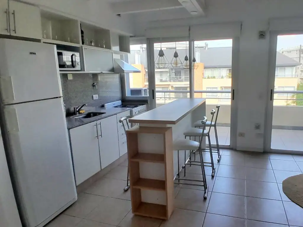 En planta baja gran ambiente con cocina integrada, baño completo, espacio de guardado, balcón con parrilla y espacio para lavadero.