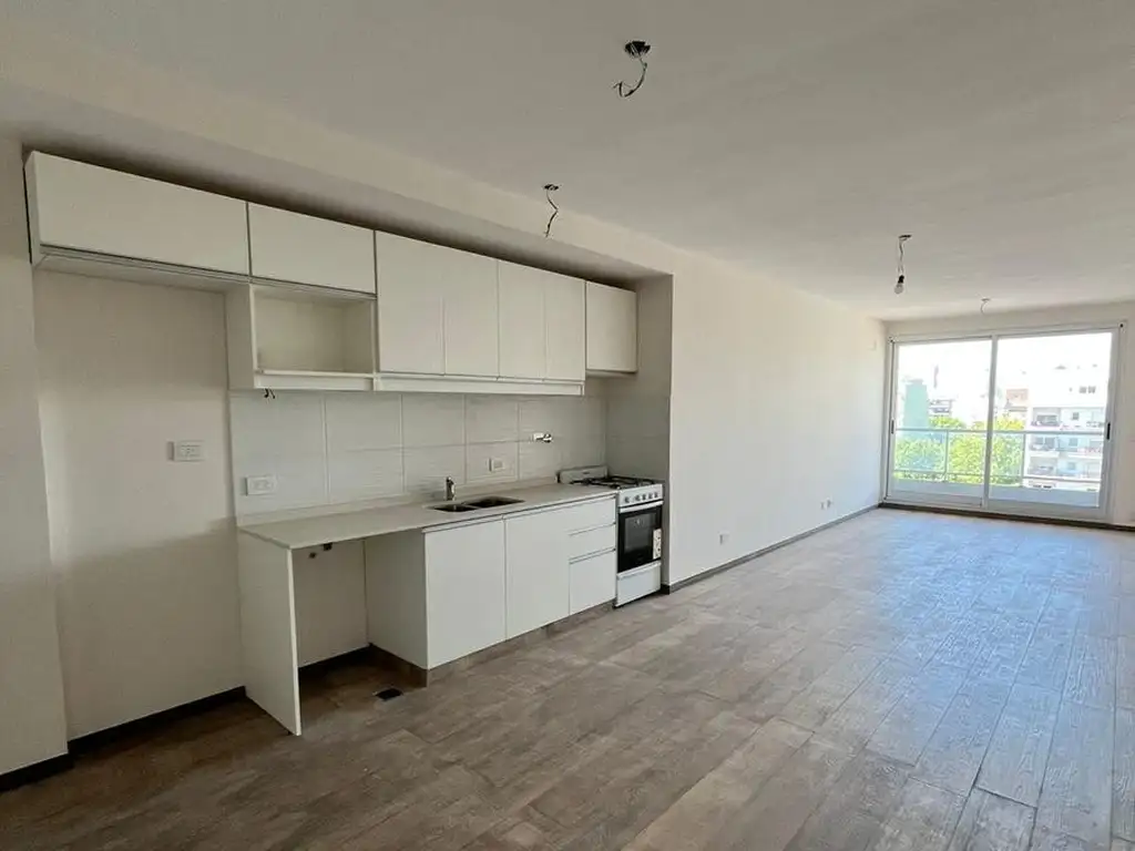 Distribución: Concepto abierto integrando la cocina con el área social. Posee grandes ventanales que brindan una excelente iluminación natural y acceso al exterior.
