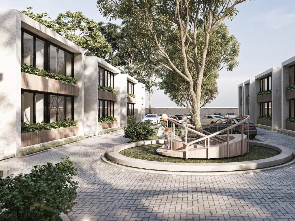 Dúplex moderno con luminoso estar comedor, cocina integrada, toilette, lavadero, galería con patio verde, dos dormitorios en suite, uno de ellos con vestidor, dos baños completos y cochera. Espacios amplios, funcionales y llenos de vida para disfrutar cada momento en tu nuevo hogar.