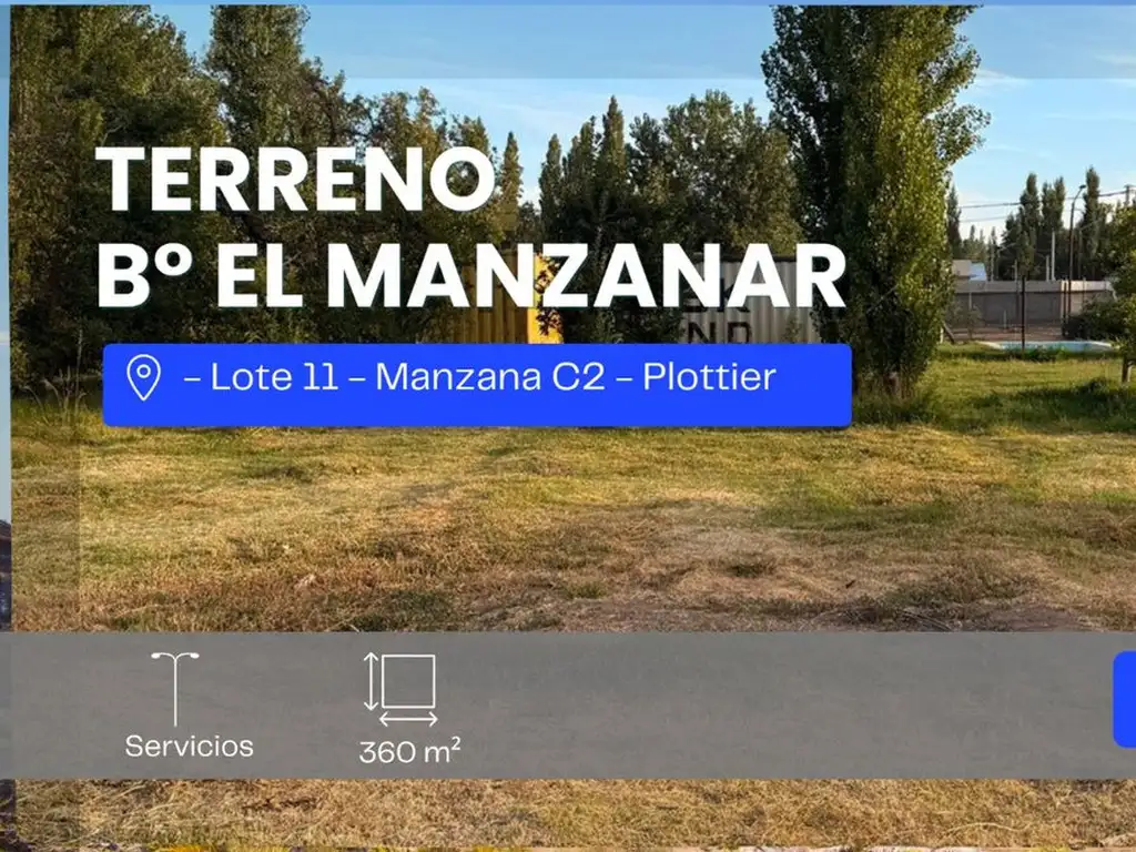 VENTA TERRENO 360 M2 B° EL MANZANAR PLOTTIER