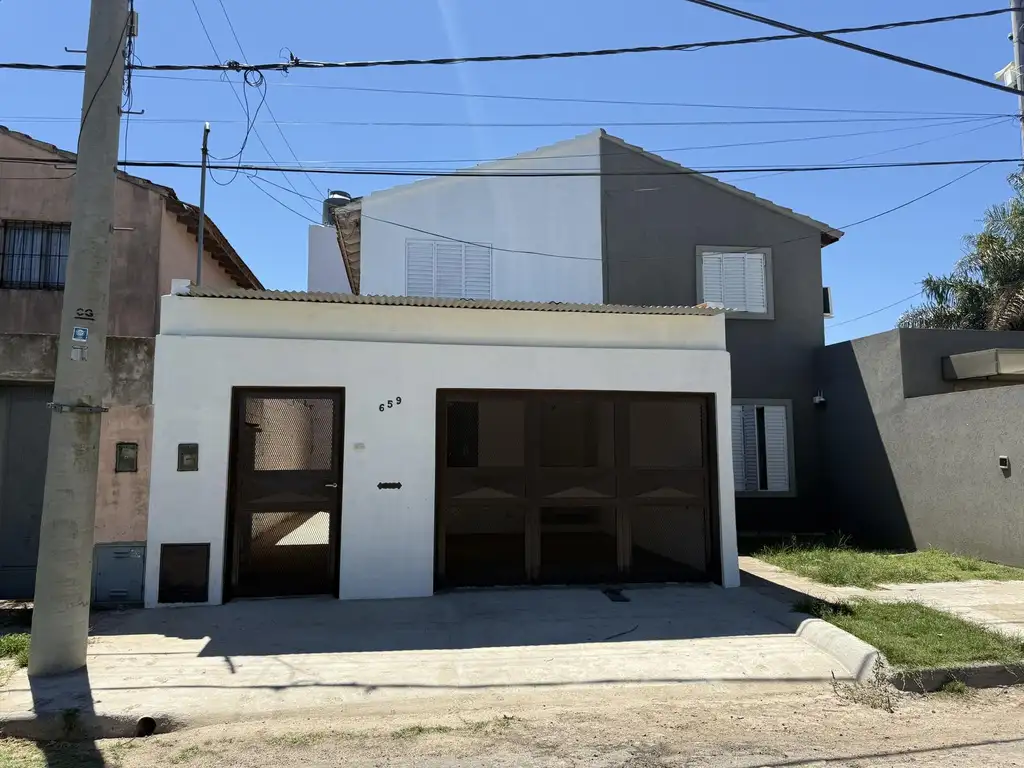El patio trasero es un espacio adicional que permite disfrutar del aire libre y realizar actividades recreativas. La propiedad está equipada con servicios esenciales como agua corriente, cloaca, agua potable y alumbrado público.