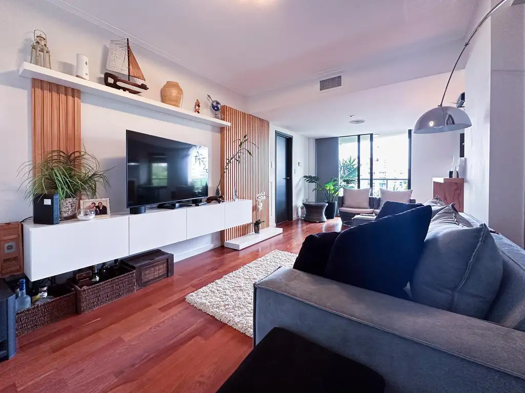 Un pasillo distribuidor conduce al área íntima, donde se ubican un baño completo y dos dormitorios: uno con placar y otro en suite con vestidor. Ambos poseen ventanales con doble vidrio hermético (DVH) al frente.La unidad fue reciclada íntegramente en 2024 con materiales de primera calidad.