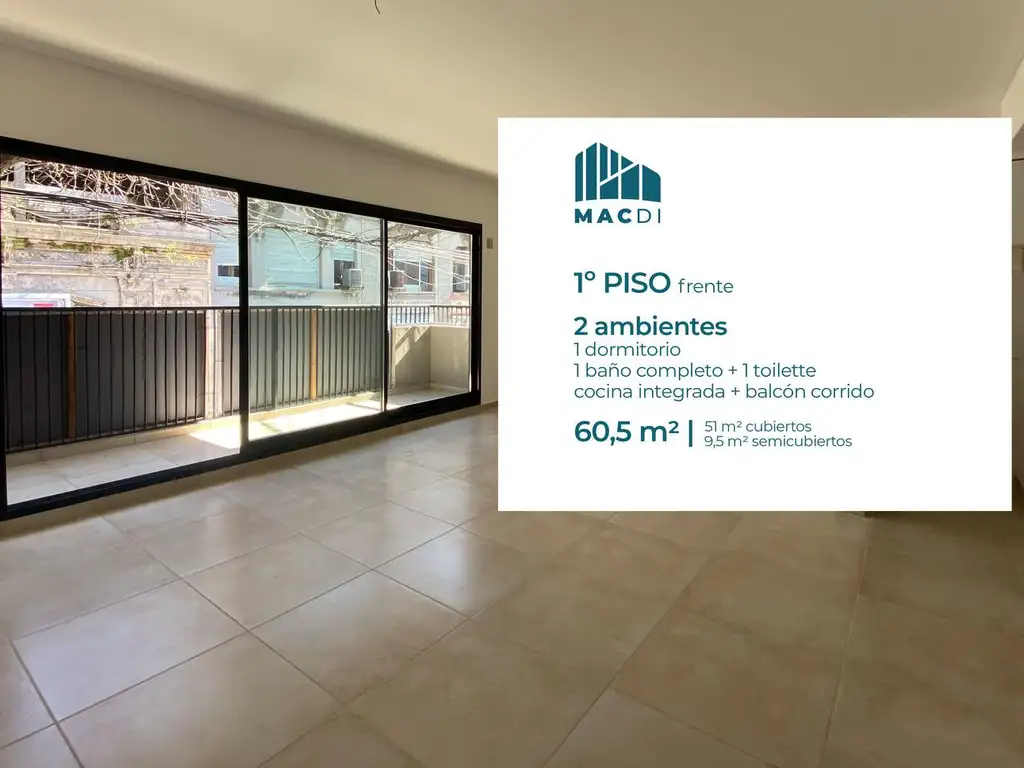 Primer piso al frente con balcón corrido, orientación Oeste, muy luminoso.