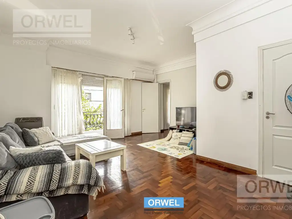 Al frente se encuentra el living comedor, de excelente dimensiones, aire acondicionado, estufa tiro balanceado y salida al balcón corrido.
