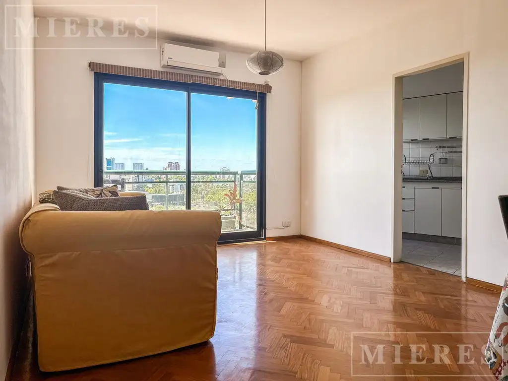 Living comedor que da a un balcón con gran vista abierta. Cocina independiente, baño completo y dormitorio.