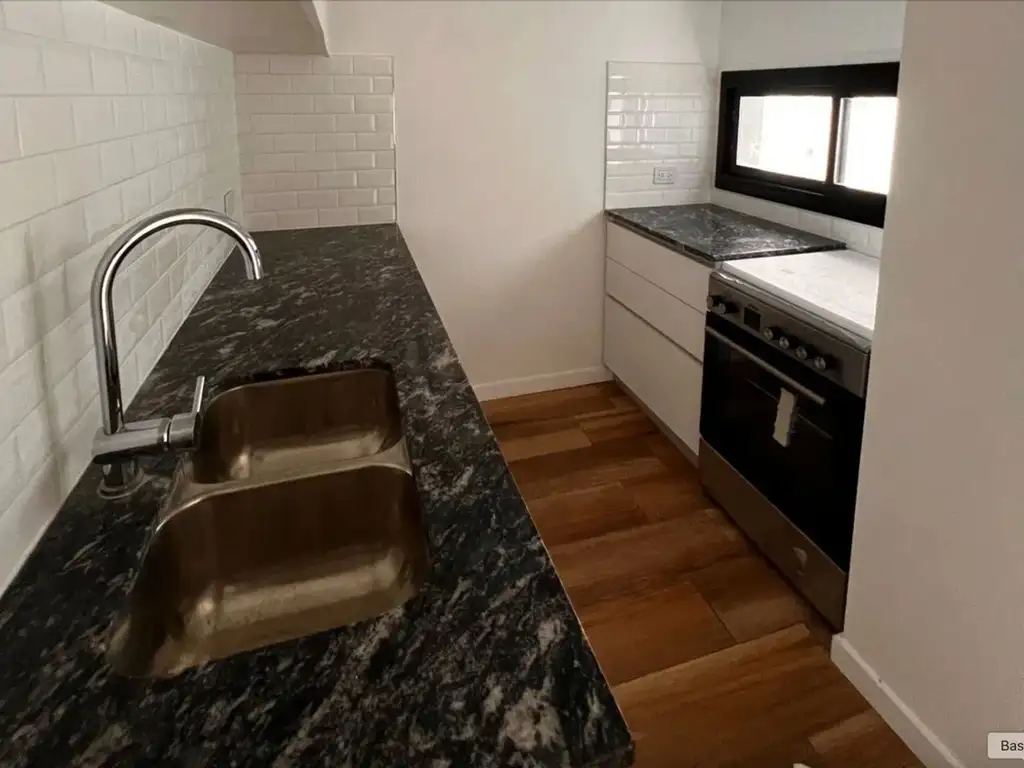 El edificio ofrece diversas amenities, tales como SUM, gimnasio y solarium. La disposición del departamento incluye un living comedor (ambiente único), cocina integrada, baño completo y un balcón corrido.