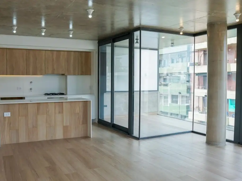 El espacio social está compuesto por un amplio living-comedor integrado a una cocina moderna, desde allí, se accede a un balcón al frente por calle Catamarca y una terraza exclusiva verde con parrillero al aire libre.