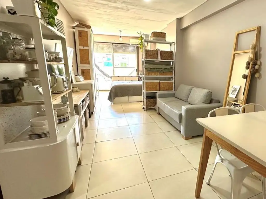 El resto del ambiente está dispuesto de forma tal que puede armarse cómodamente un living-comedor y cuarto.
