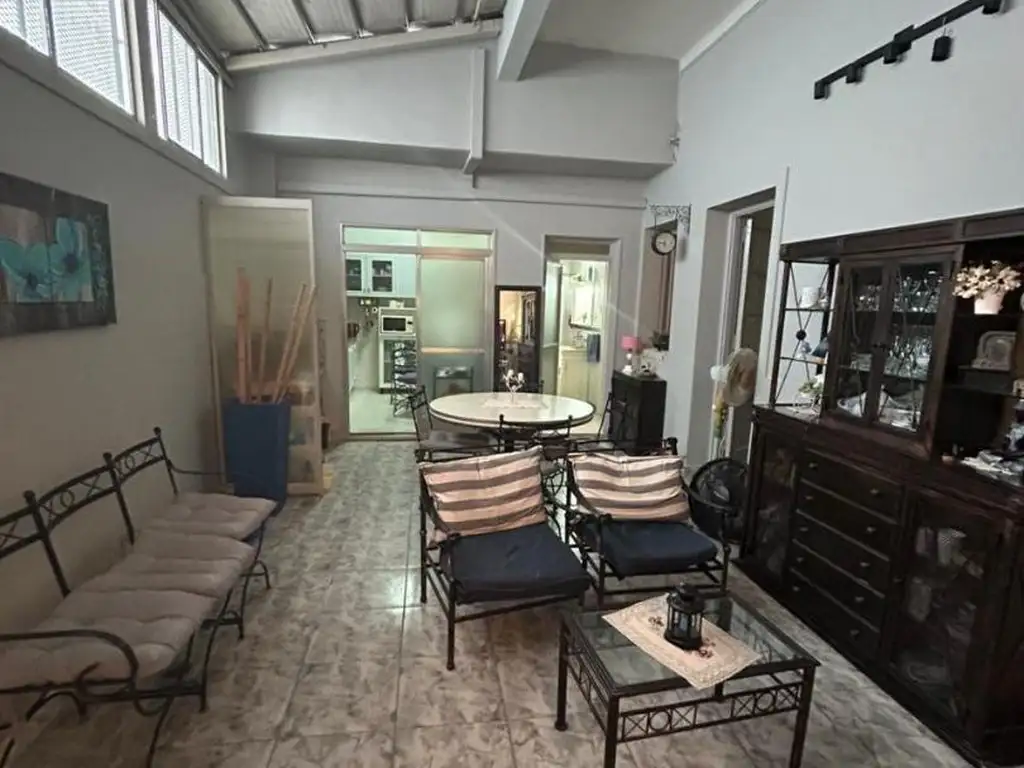 se ingresa por una cochera cubierta, despues pasamos a un patio cubierto con todo rebatible (actualmente se usa de living-comedor)