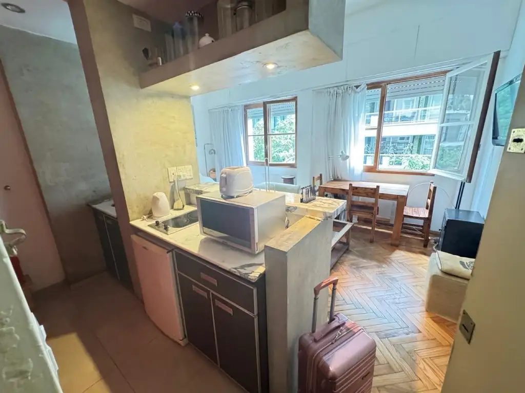 departamento al frente, divisible, Barrio Norte Edificio de estilo, ascensor. Amplio ambiente con cocina integrada, dormitorio con ventana al frente, super luminoso y ventilado, techos altos, baño con ducha, excelente lugar de guardado, aire acondicionado frio calor. Pisos de parquet. Servicios individuales.