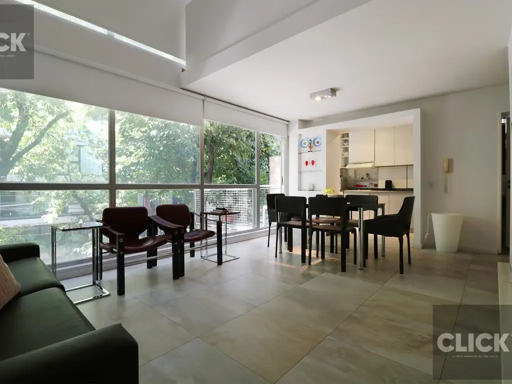 Excelente loft de 2 ambientes más escritorio en doble altura, con cochera. Esta exclusiva unidad en doble altura se destaca por un frente compuesto casi íntegramente por ventanales de piso a techo que, junto a su orientación Este, garantizan sol y luz natural durante todo el día. Al encontrarse en un segundo piso, el balcón y el living ofrecen una vista relajante y directa a la copa de los árboles, brindando privacidad y un entorno verde único en pleno Palermo Hollywood..