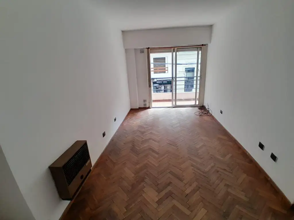 Dormitorio piso parquet, placard completo, y balcón al frente.