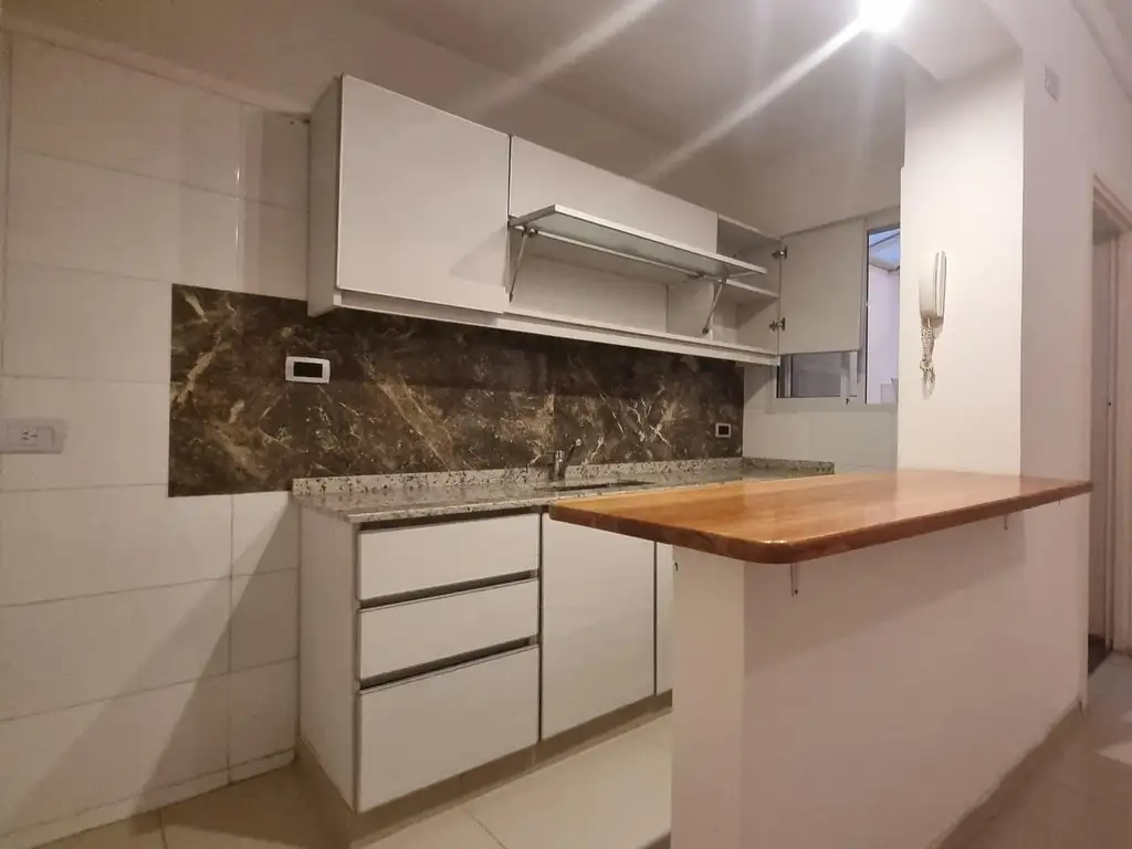 Cocina Semi-Integrada (1.22 x 2.70 m): Equipamiento de primera con muebles bajo mesada y alacenas nuevas, detalles en mármol y barra desayunadora. Incluye cocina eléctrica y termotanque a estrenar. (Dato clave: El edificio cuenta con gas y la conexión interna es factible).
