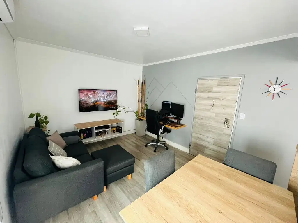 Living comedor con cocina integrada con barra desayudara. Dormitorio amplio de 3x4 con placard abierto tipo vestidor.