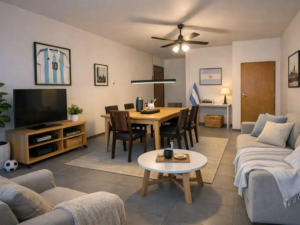 El living comedor es notablemente amplio y luminoso, ofreciendo un espacio perfecto para el entretenimiento. Desde aquí, se accede a un balcón que brinda vistas panorámicas a la montaña, creando un entorno de tranquilidad y belleza natural.