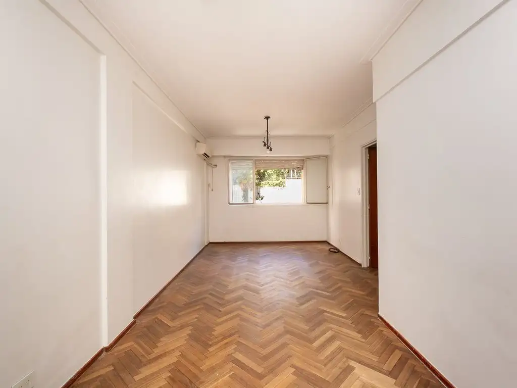 • Amplio living comedor, con pisos de parquet en muy buen estado, ventanal al contrafrente y buena circulación de aire.