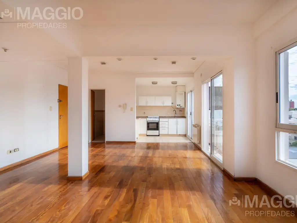 - Living-Comedor con pisos parquet y vista abierta.