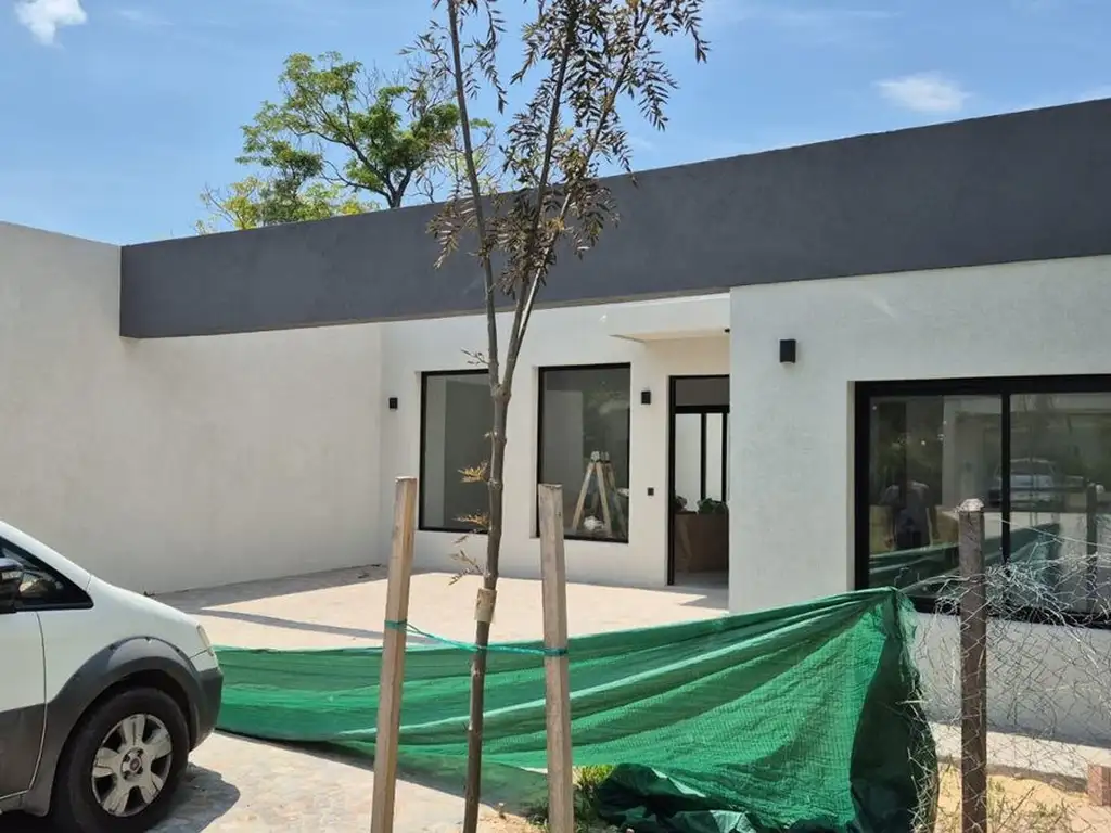 Detalles Constructivos Construcción tradicional sobre platea de hormigón y techo de losa. Revestimiento exterior impermeable texturado. Pisos de porcelanato de primera marca. Mesadas de mármol con muebles bajo mesada y alacenas. Aberturas de aluminio negro con DVH (A30) y mosquiteros. Calefacción sectorizada por piso radiante con caldera dual italiana Baxi. Preinstalaciones para equipos de aire acondicionado en ambientes principales. Cocina con anafe a gas y horno eléctrico empotrable. Iluminación interna y externa instalada. Distribución