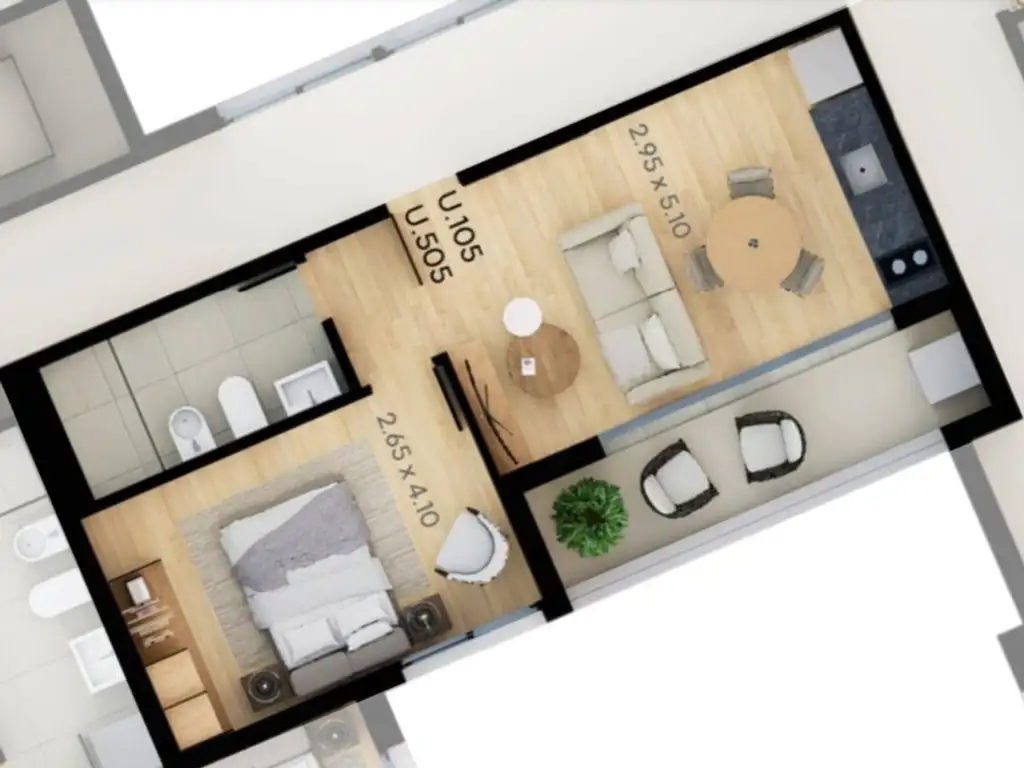 APARTAMENTOS DE 1 DORMITORIO DESDE U$S 131.040 (UNIDAD 305):