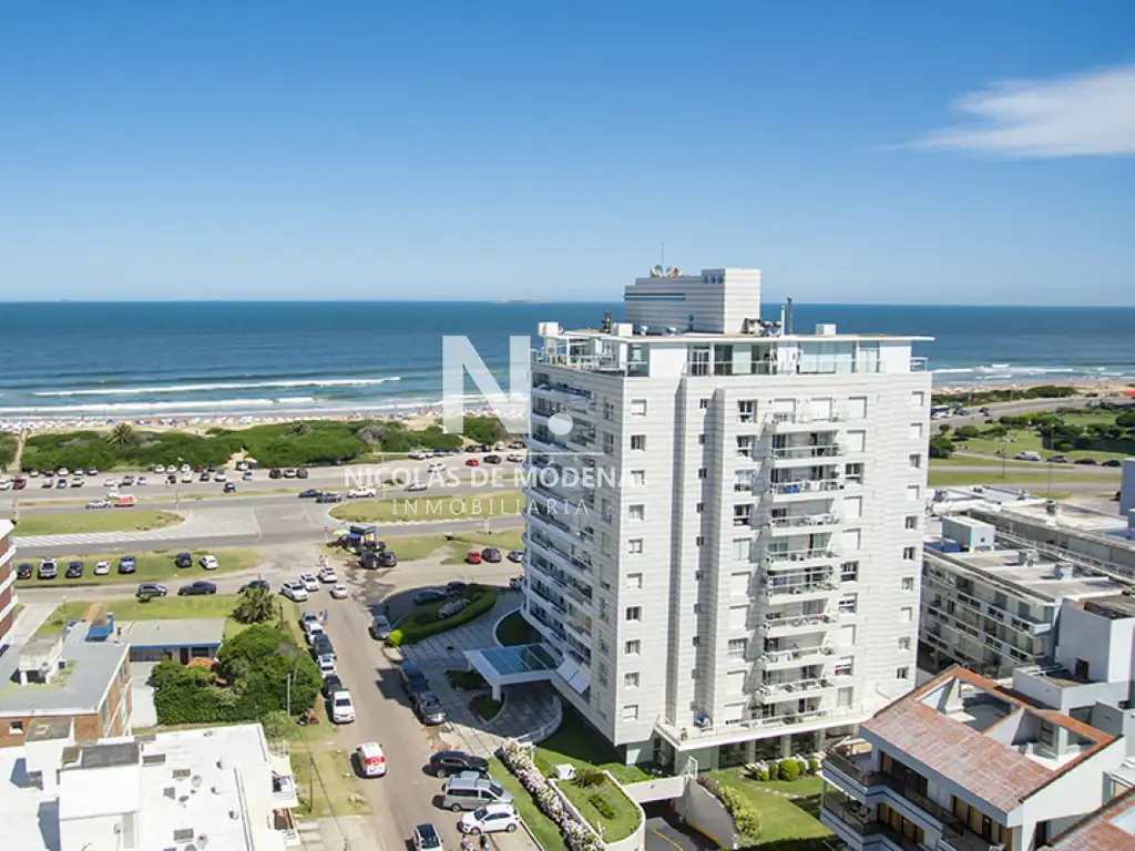 Cuenta con amplio y luminoso living comedor, con ventanales dobles de piso a techo que permiten disfrutar del la vista panorámica hacia Playa Brava y Mansa y espaciosa terraza. Muy buena distribución con tres dormitorios con salida al balcón, principal en suite. Cocina definida, bien equipada con lavadero.