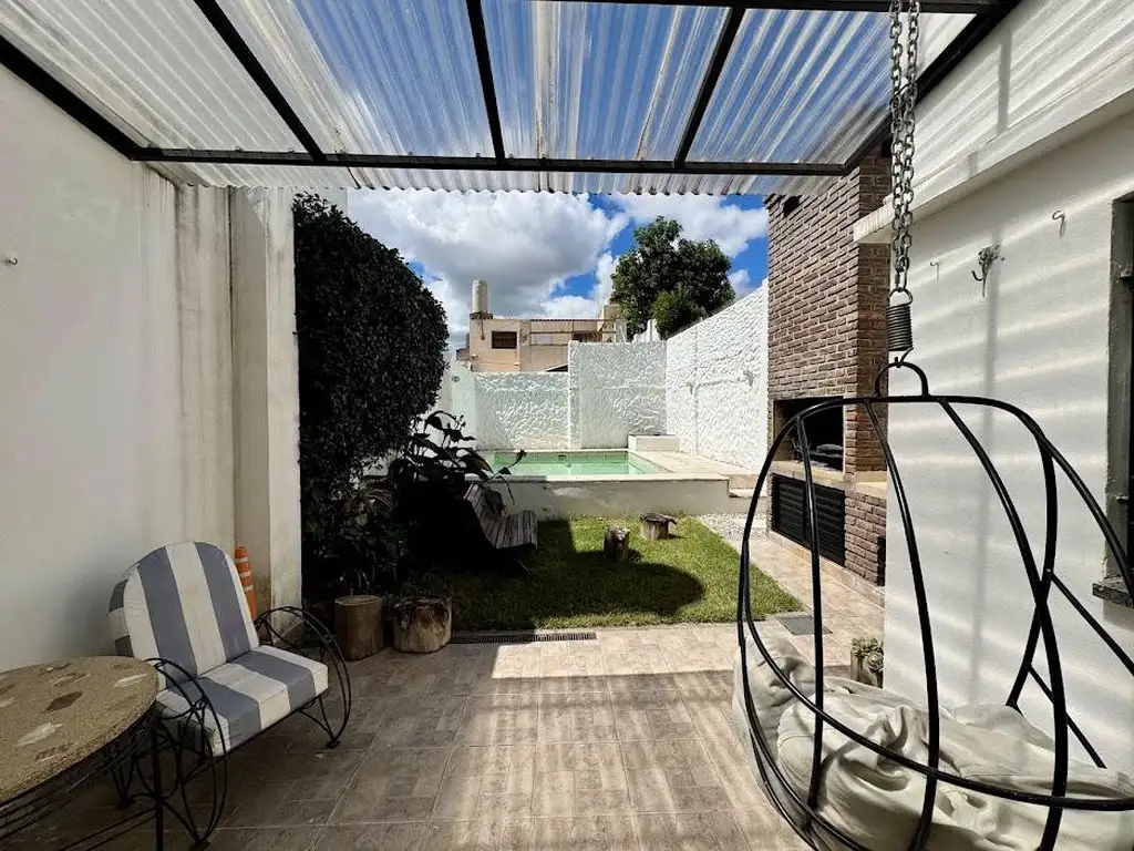 La propiedad se desarrolla en dos plantas y ofrece espacios pensados para la vida diaria y para disfrutar en familia. En planta baja encontramos un living comedor luminoso, semi integrado a la cocina, toilette, cochera con portón automatizado y salida al jardín, donde el parrillero y la pileta invitan a aprovechar cada momento al aire libre.
