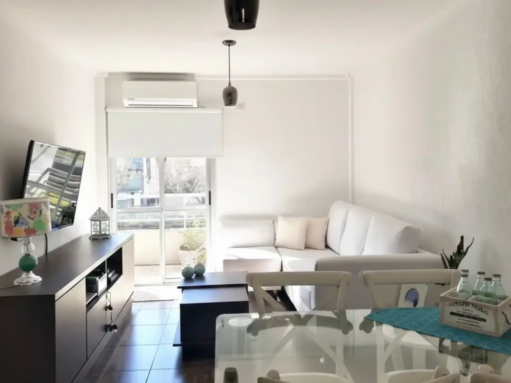 Al ingresar, encontramos la cocina equipada con mueble bajo mesada y alacena, integrada al living comedor, un ambiente cómodo y luminoso con salida directa al balcón al frente.